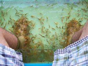 The spa services in Thailand are really cheap. We pay about $6 for a 1-hour Thai massage. I had a 1-hour foot massage that really tickled. But one of the weirdest things is my Dad dipped his feet into a tank and all these fish ate the dead skin. Sounds fishy? Check out my photo.