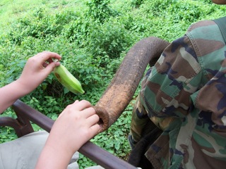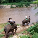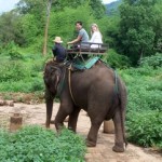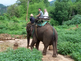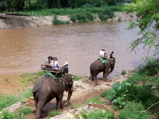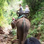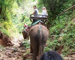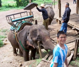 Wow, what a day! Today, my Dad took me on a one-day trek out of Chiang Mai. Our first stop was a trek on elephants through the jungle. I bought some bananas to feed my elephant. Then, we went on a hike to this awesome waterfall. At the end of the trail, we could swim in a natural pool under the waterfall. The water was so warm! After that, we went white water rafting and it was my first time doing that. The rapids were really running, but again, the water was warm! I almost didn’t go because it looked