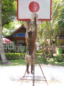After the Tiger Kingdom, we went to the monkey centre. They had a monkey show where they played basketball, and we fed monkeys with bananas and small apples. My Dad said they reminded him of me! I was even in the main show and they brought me out of my seat where a monkey untied my hands!