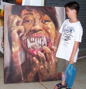 At the night bazaar this evening, I came across this original painting. I told my Dad I had to get a picture of this. The title of the painting should be “don’t do meth, not even once.” How would you like to wake up to this painting in your bedroom every day! Yikes.