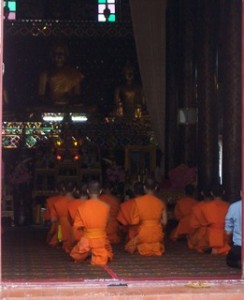 My Dad and I were walking to the night bazaar and we heard these monks chanting. It sounds so cool in the distance to hear the chanting, and the Buddhist temples are beautiful. There are so many of them here. We were able to stand on a bench and take this photo. I wish I could share the sounds and the bells with you.